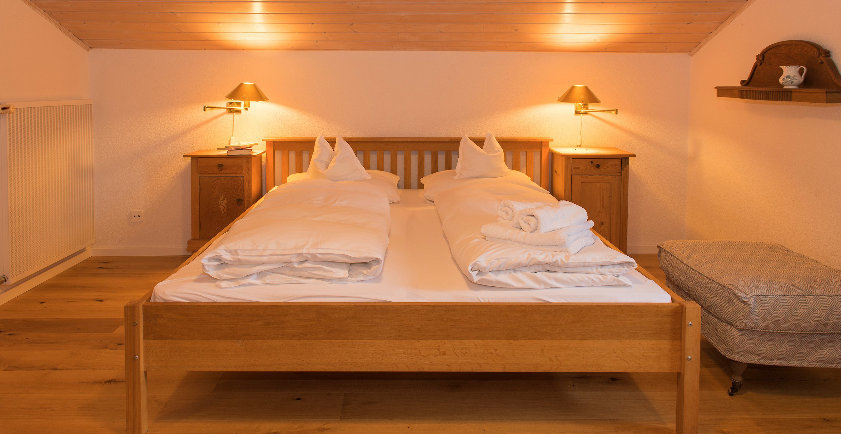 Eine Flasche Selterswasser steht als Willkommensgruß bereit, ebenfalls ein Döschen Ringelblumensalbe. Der Wirtin ist es zudem ein Anliegen, eine Wärmflasche bereitzulegen, die an kalten Wintertagen für gemütliche Wärme sorgt.