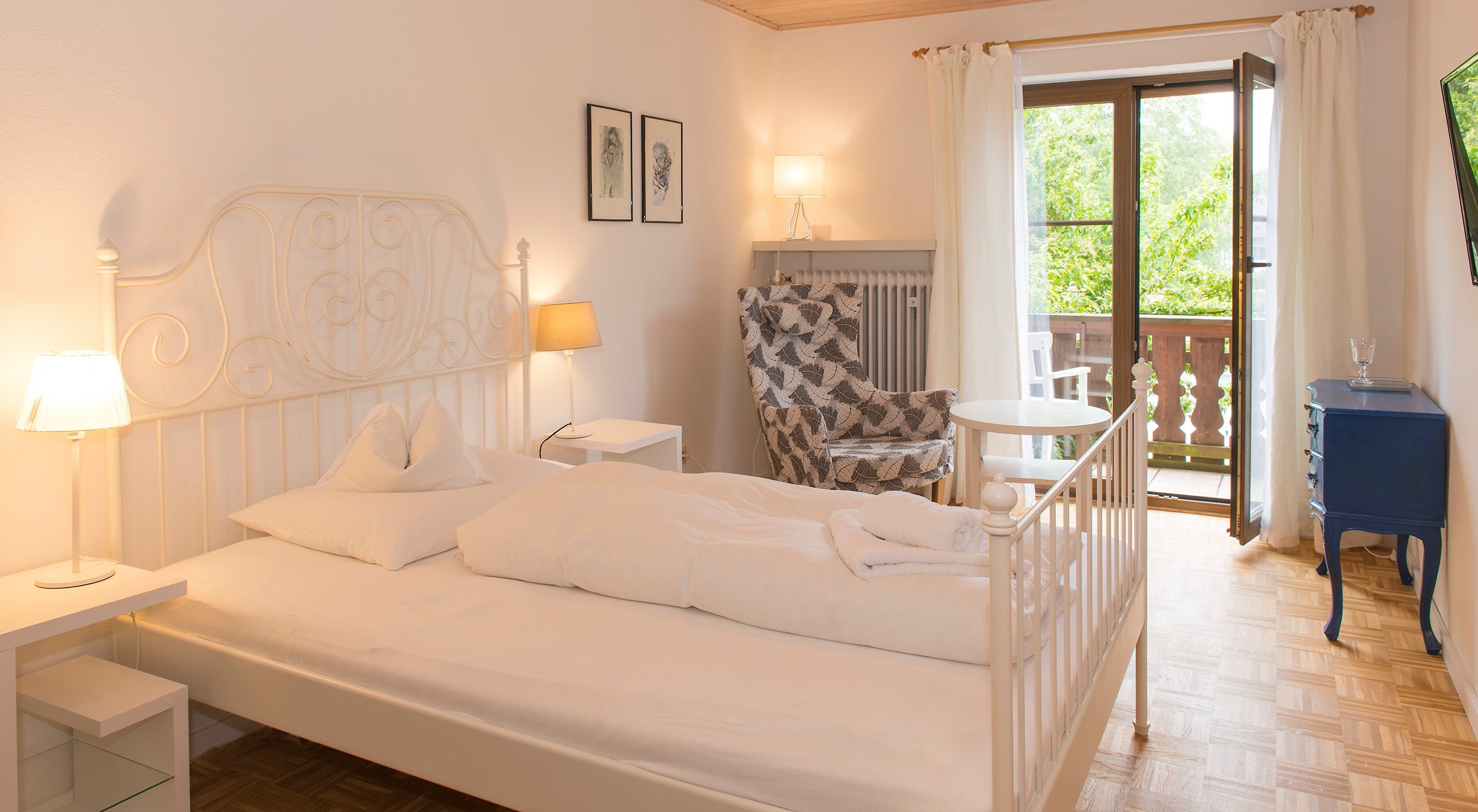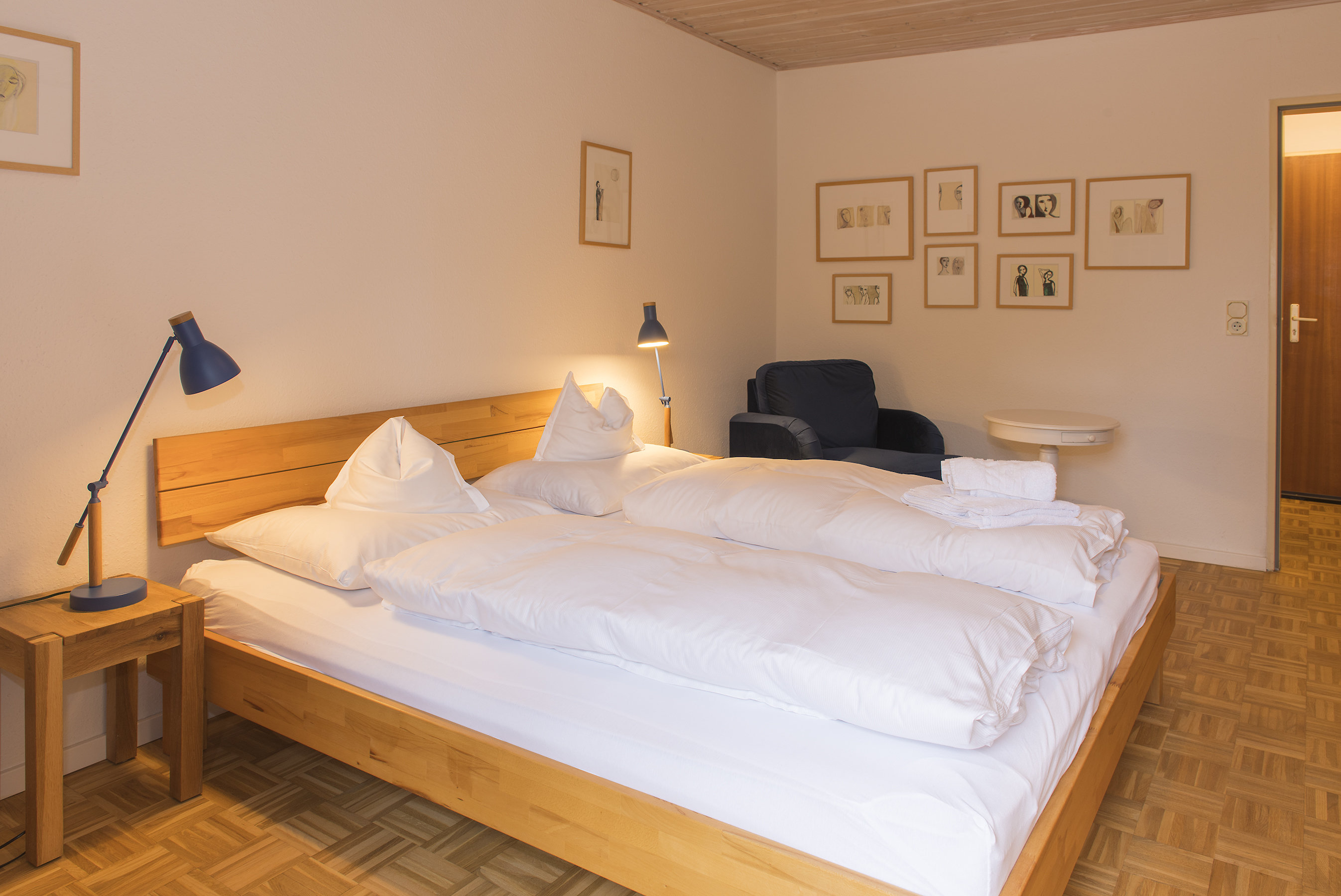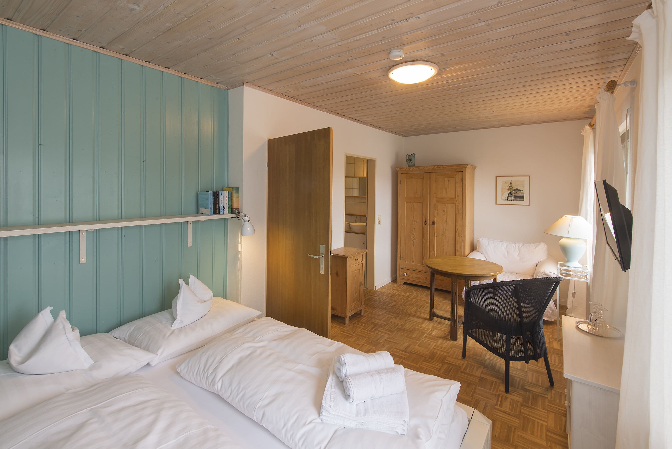 Jedes unserer Zimmer ist individuell und mit viel Liebe zum Detail, teilweise mit Antiquitäten eingerichtet und mit einem hochwertigen geölten Eichenparkett ausgelegt.