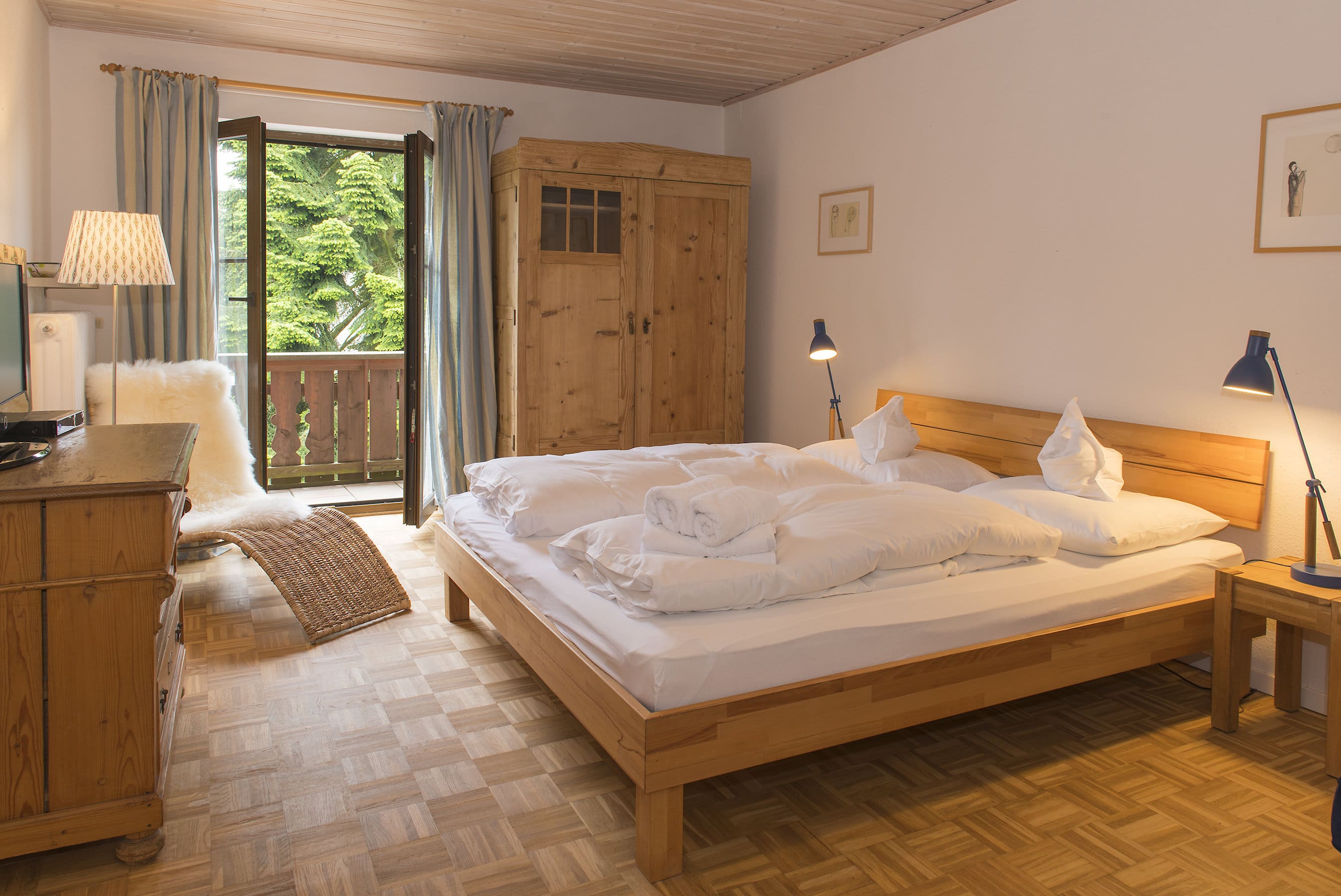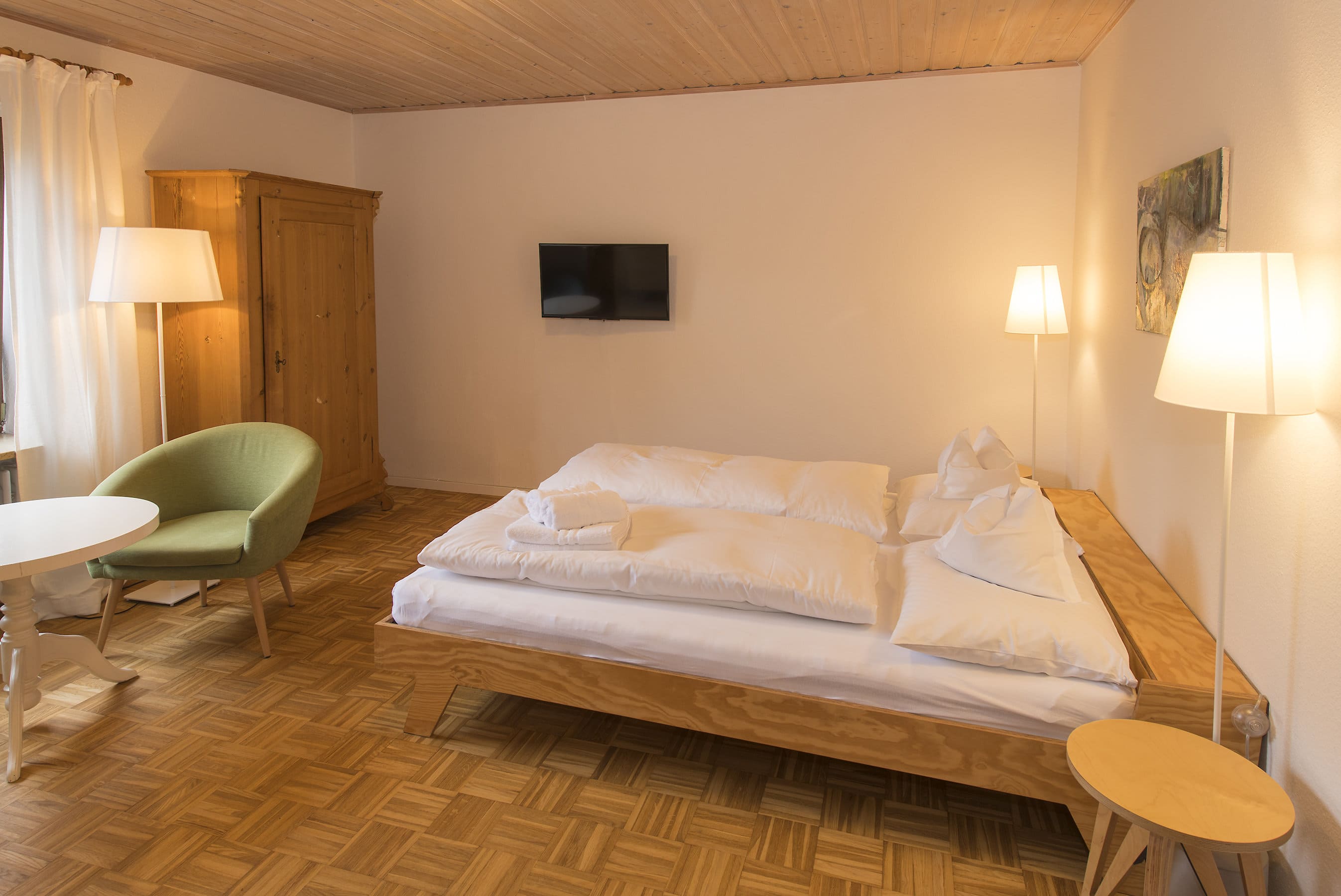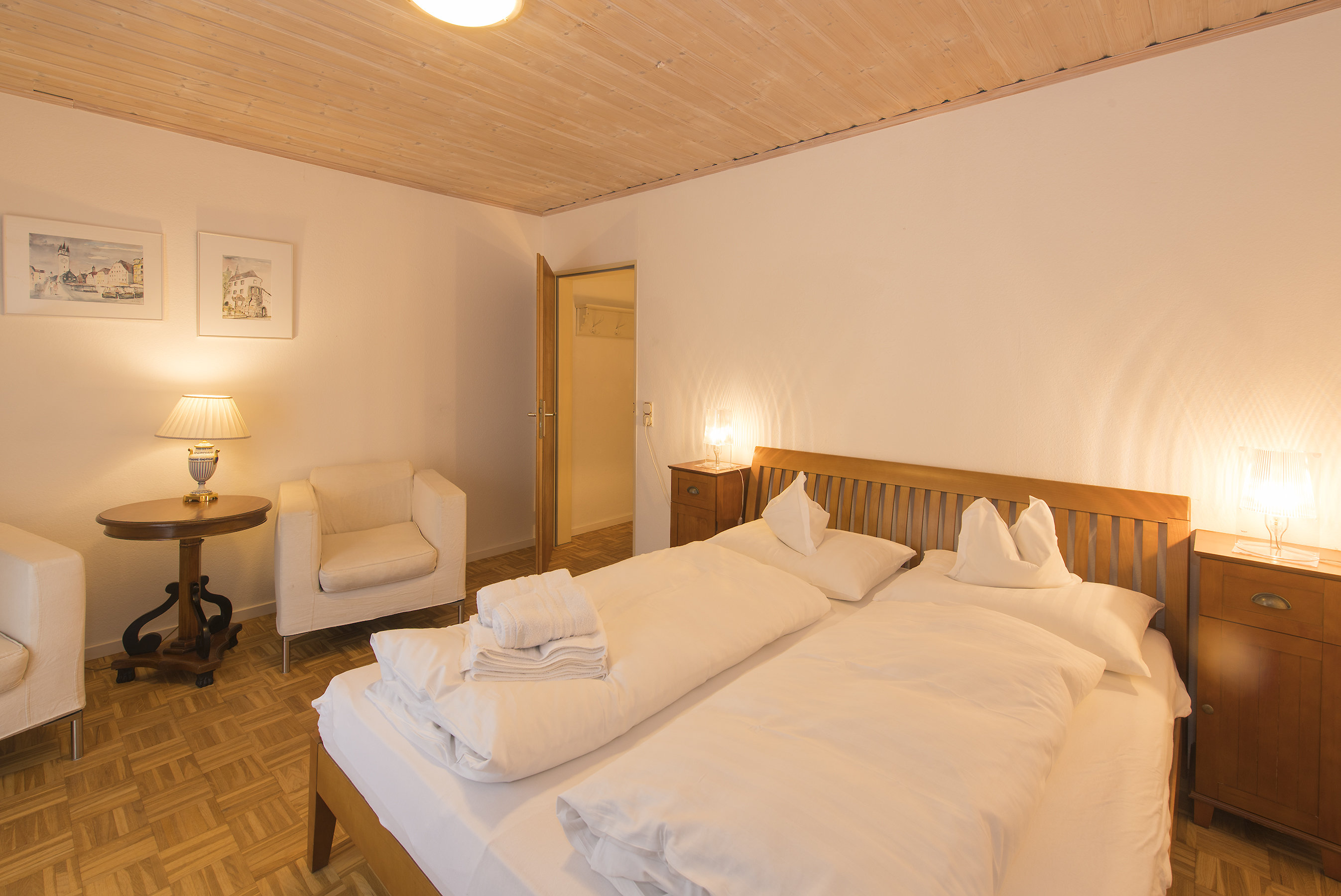 Jedes unserer Zimmer ist individuell und mit viel Liebe zum Detail, teilweise mit Antiquitäten eingerichtet und mit einem hochwertigen geölten Eichenparkett ausgelegt.